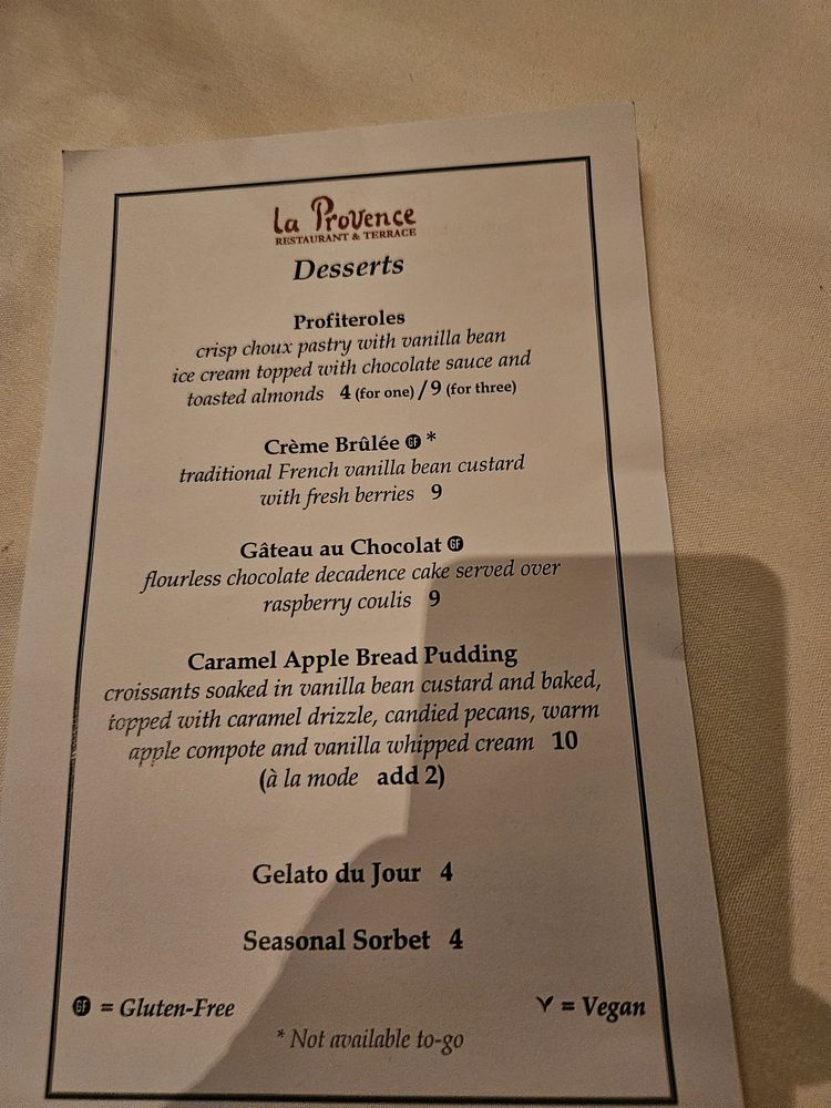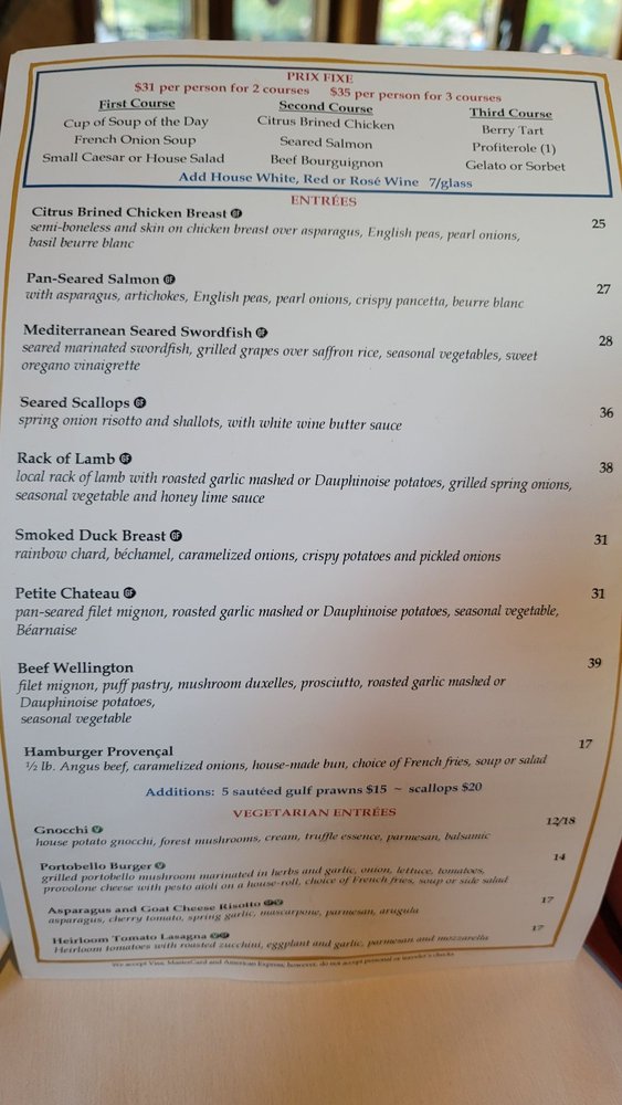 La Provence, located in Roseville, CA, offers a sophisticated dining experience with a range of French-inspired dishes. The menu boasts marinated olives, spinach fondue, and a variety of salads including a classic Cobb and a shrimp Louis. Main courses feature options like Coq au Vin and Grilled Salmon. The restaurant provides a romantic ambiance for special occasions, with outdoor seating and a full bar offering happy hour specials. Customer reviews highlight the delicious food and elegant decor, making La Provence a must-visit for those seeking a memorable dining experience. Don't miss out on the chance to enjoy a taste of France at La Provence before they close their doors.